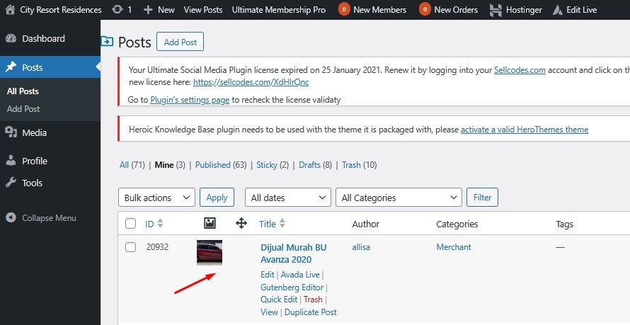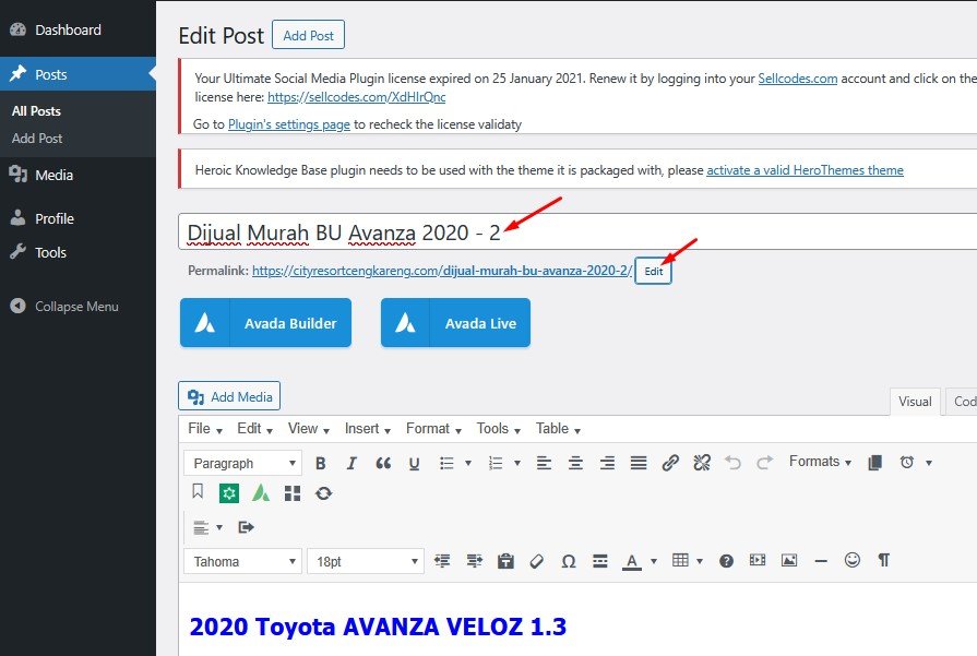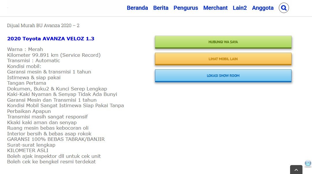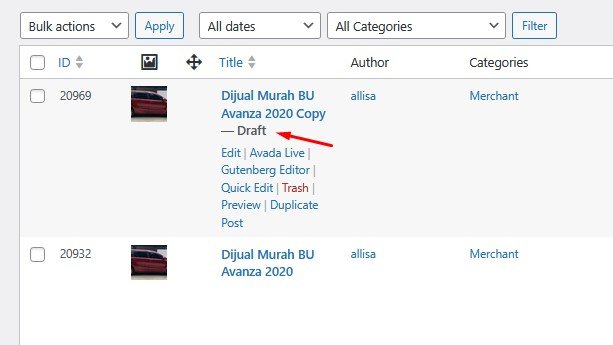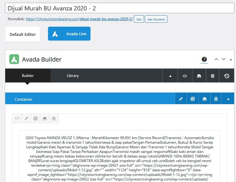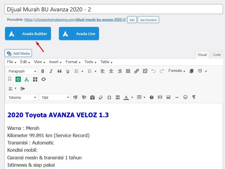 Untuk membuat konten ini, kita akan menggunakan post sebelumnya yaitu “Dijual Murah BU Avanza 2020”