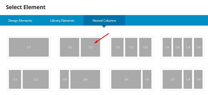 Sekarang klik pada nested column 1/2+1/2 yang saat ini berada paling atas