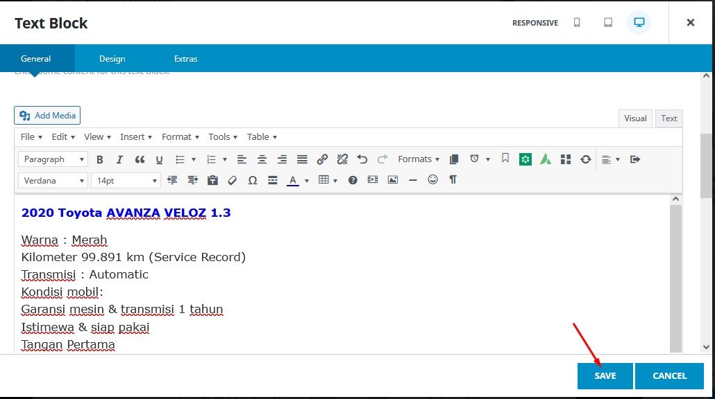 Jangan lupa untuk klik “Save” untuk menyimpan isi text block itu