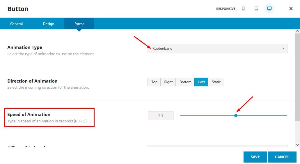 Animation Type adalah animasi saat button ditampilkan, atur juga Speed of Animation nya supaya jangan terlalu cepat