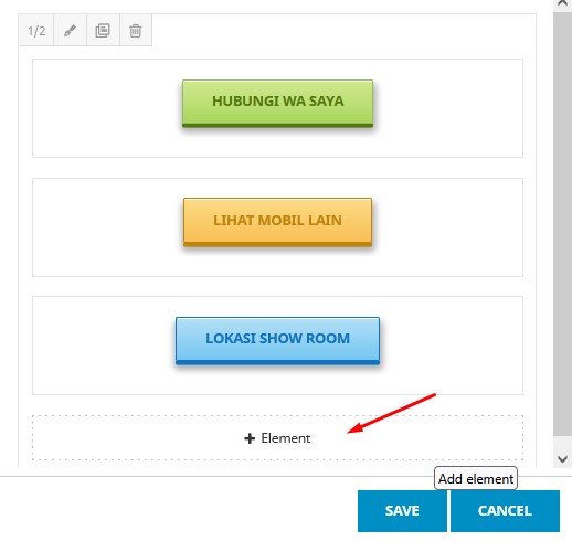 ( 9 ) Membuat 2 buah button lagi , dengan cara klik “Clone Element” pada button ke-1