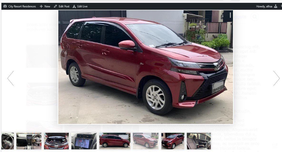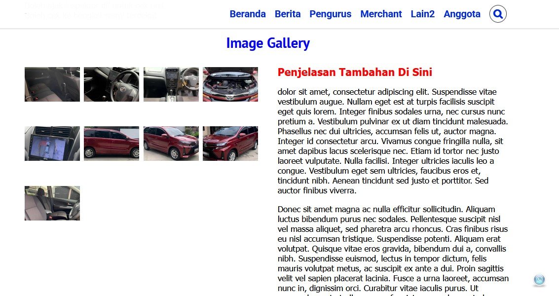 Jika post tersebut sudah disetujui, maka tampilannya pada situs adalah seperti gambar di bawah ini, dan jika gambar gallery di klik, maka akan tampil gambar gallery dengan tombol panah kanan kiri untuk mengganti gambar yang ditampilkan
