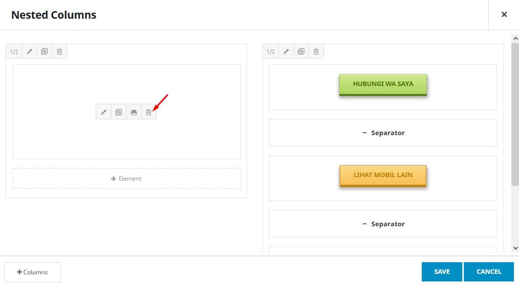 Hapus semua element pada kolom kanan yaitu element button dan element separator