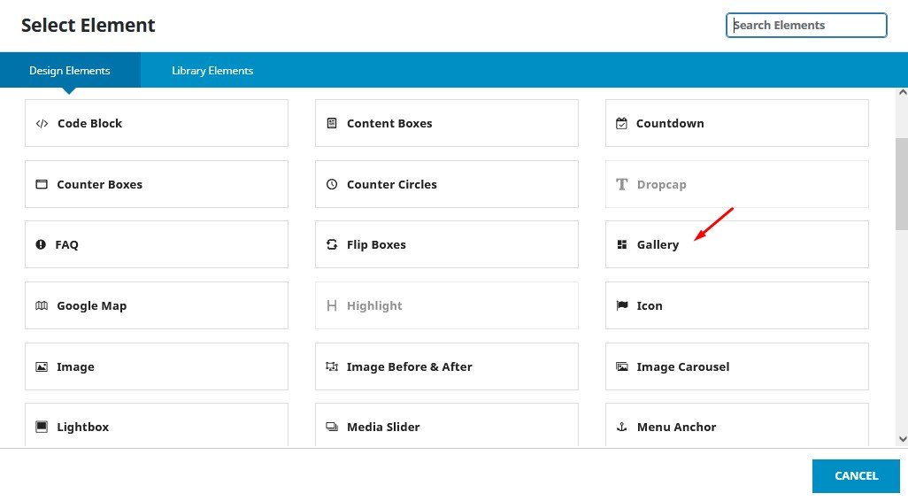 Lalu klik “+ Element” untuk membuat element “Gallery