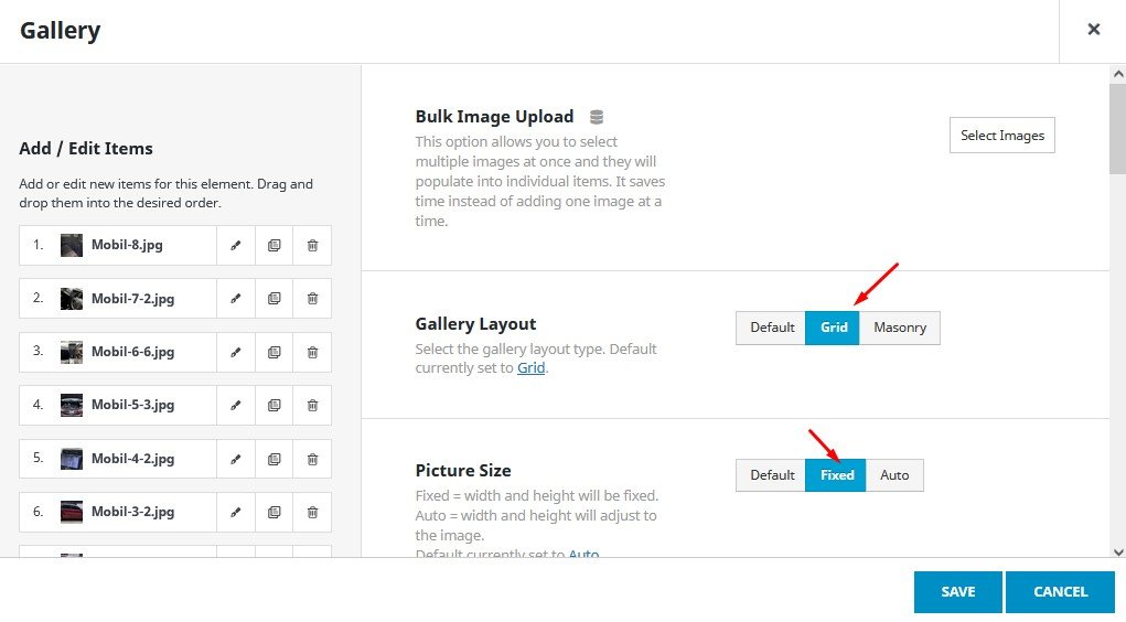 Kemudian atur parameter gallery