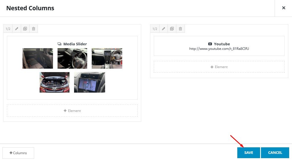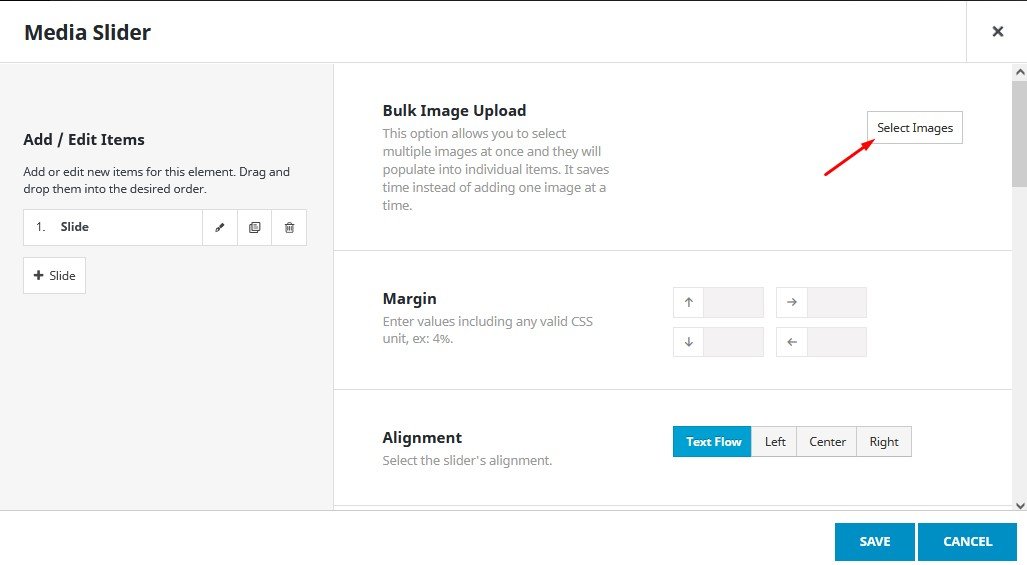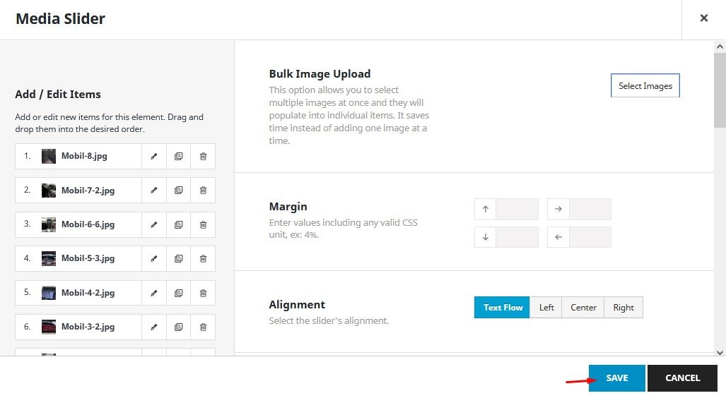 Kemudian tambahkan element “Media Slider” pada kolom sebelah kiri