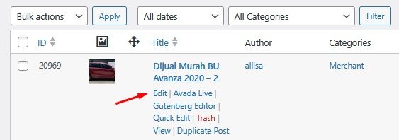 Untuk membuat konten ini, kita akan menggunakan post sebelumnya yaitu “Dijual Murah BU Avanza 2020”