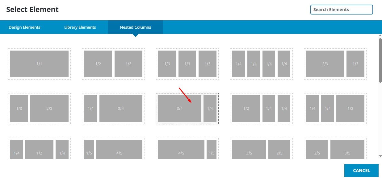 Mula-mula buat dulu container yang berisi nested element 3/4 + 1/4