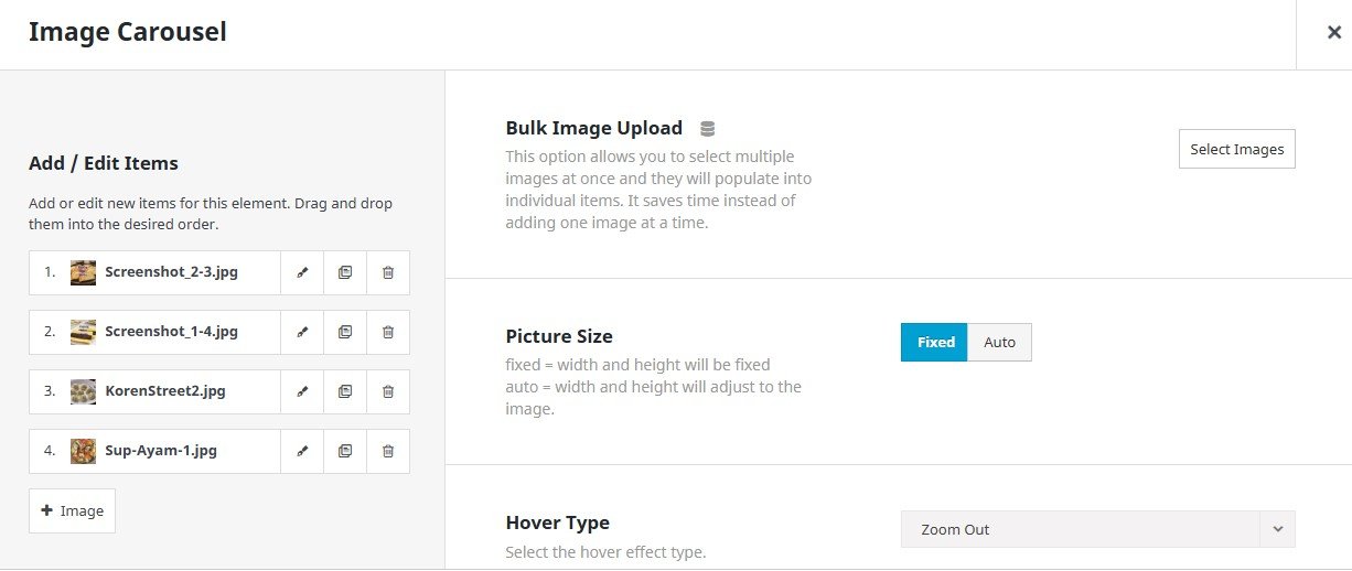Isikan Image Caraosel dengan beberapa gambar, picture size dibuat “Fixed”