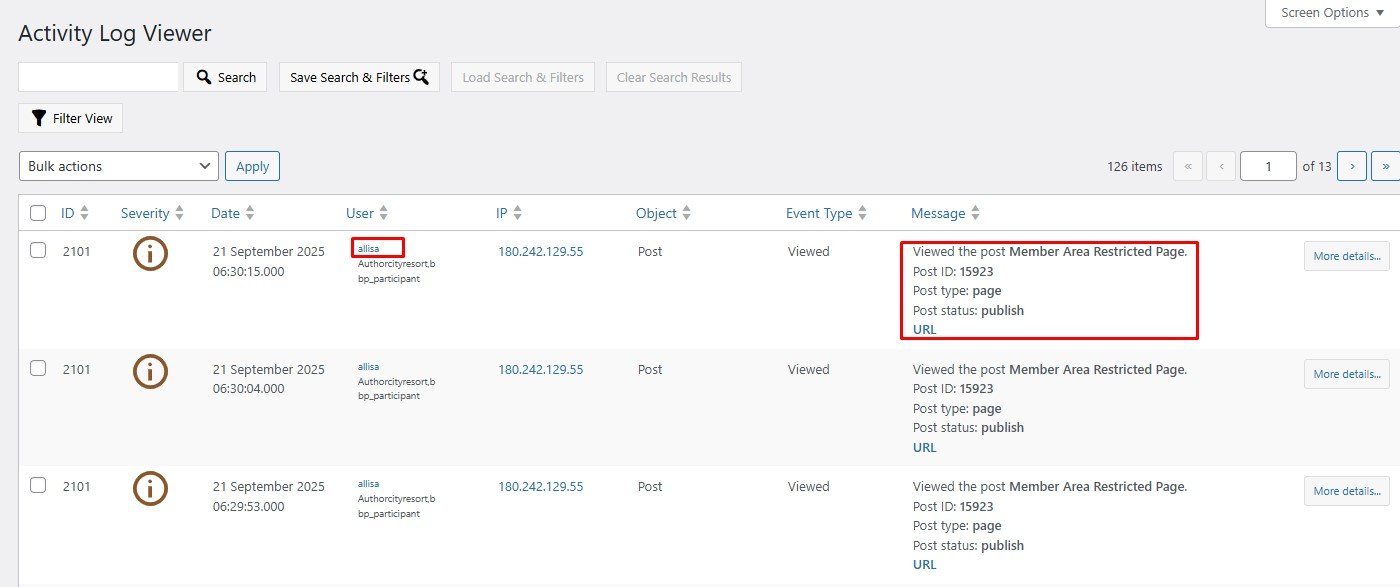 Pada gambar di atas terlihat bahwa username = allisa diberikan akses untuk melihat artikel “Author CityResort” dan “Merchant” dan diberikan akses untuk membuka “Dashboard” (untuk membuat artikel, dalam hal ini adalah iklan sebagai merchant)