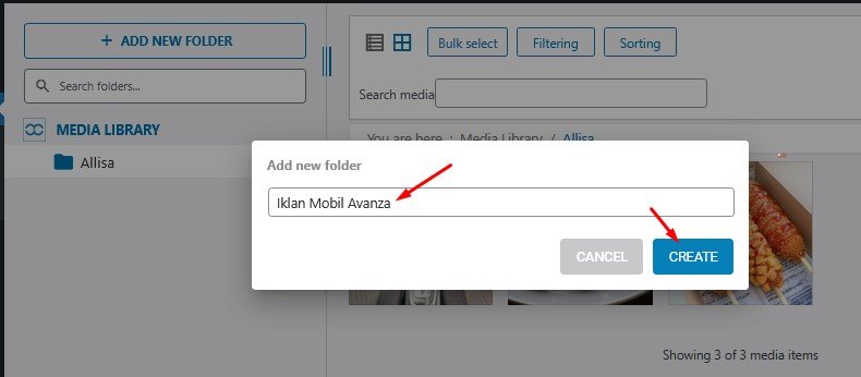 • Berikan nama pada folder itu, misalnya “Iklan Mobil Avanza”, kemudian klik “CREATE”