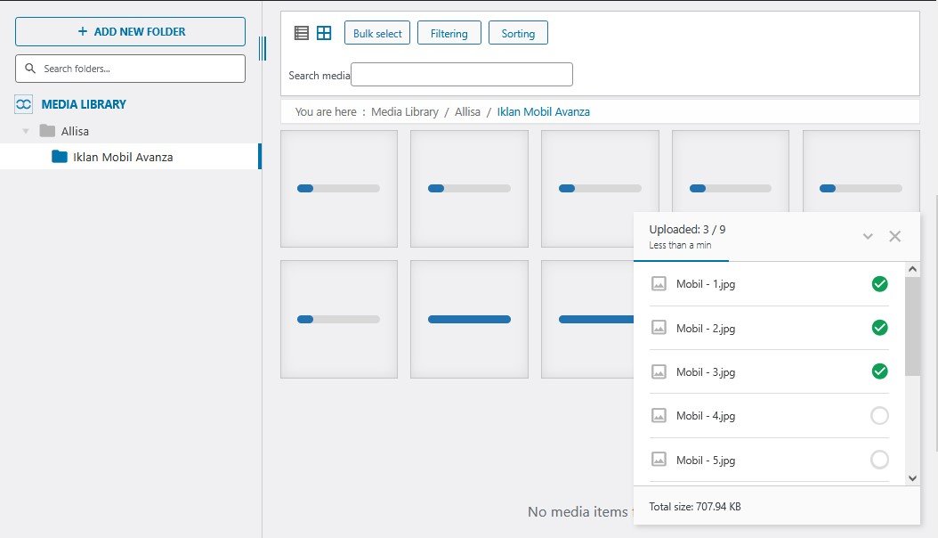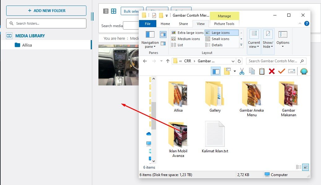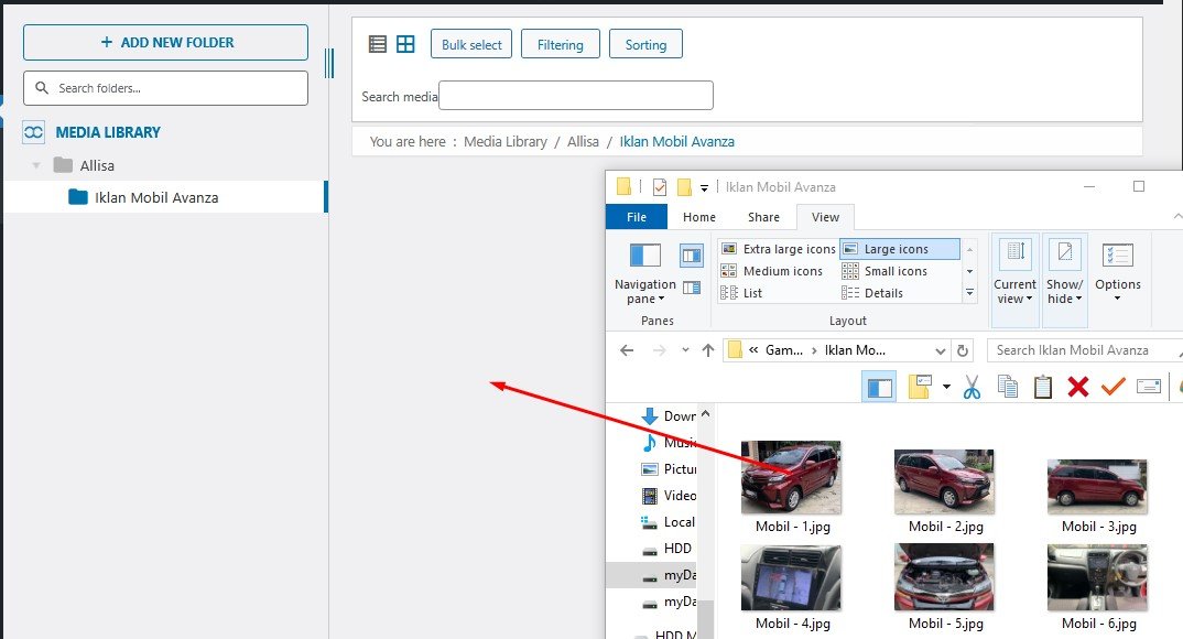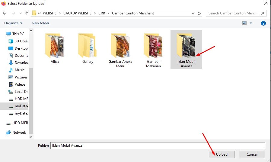 • Untuk upload satu folder, silakan drag satu folder misalnya folder “iklan mobil avanza” ke dalam folder Allisa