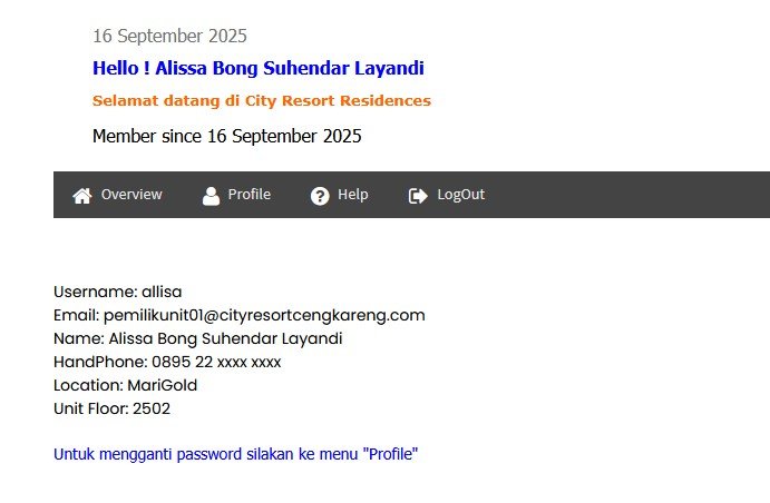 Contoh, mula-mula username = allisa adalah membership biasa, kemudian mengajukan (request) untuk mengubahnya kepada AdminWeb menjadi sebagai “Pemilik Unit” dan “Merchant” yaitu orang yang mempunyai unit pada City Resort Residences , sekaligus orang yang membuka iklan pada situs ini (merchant), jadi “role” atau “membership” seseorang dapat biasa, 1 buah membership atau membership 2 buah atau lebih tergantung sesuai kebutuhannya