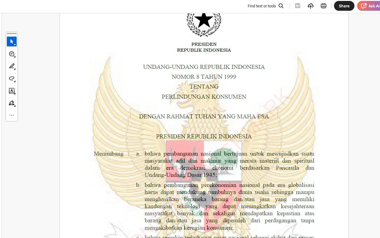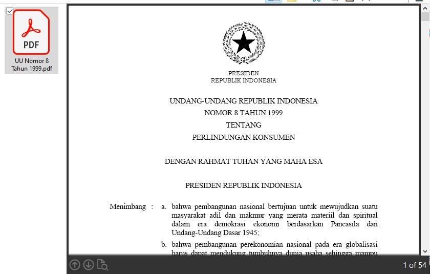 Misalnya ada sebuah dokumen PDF , anggap saja UU Perlindungan Konsumen , berisi 54 halaman