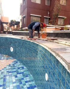 Seluruh keramik yang retak dan pecah di dasar maupun pinggiran kolam telah diganti dengan material baru berkualitas tinggi. Untuk memastikan keamanan pengguna, area tepi kolam kini menggunakan keramik anti-slip, sehingga risiko terpeleset dapat diminimalisir secara signifikan. Selain itu, seluruh nat (grout) pada dasar dan dinding kolam di-refill kembali, memastikan kerapatan dan daya tahan kolam tetap optimal dalam jangka panjang.