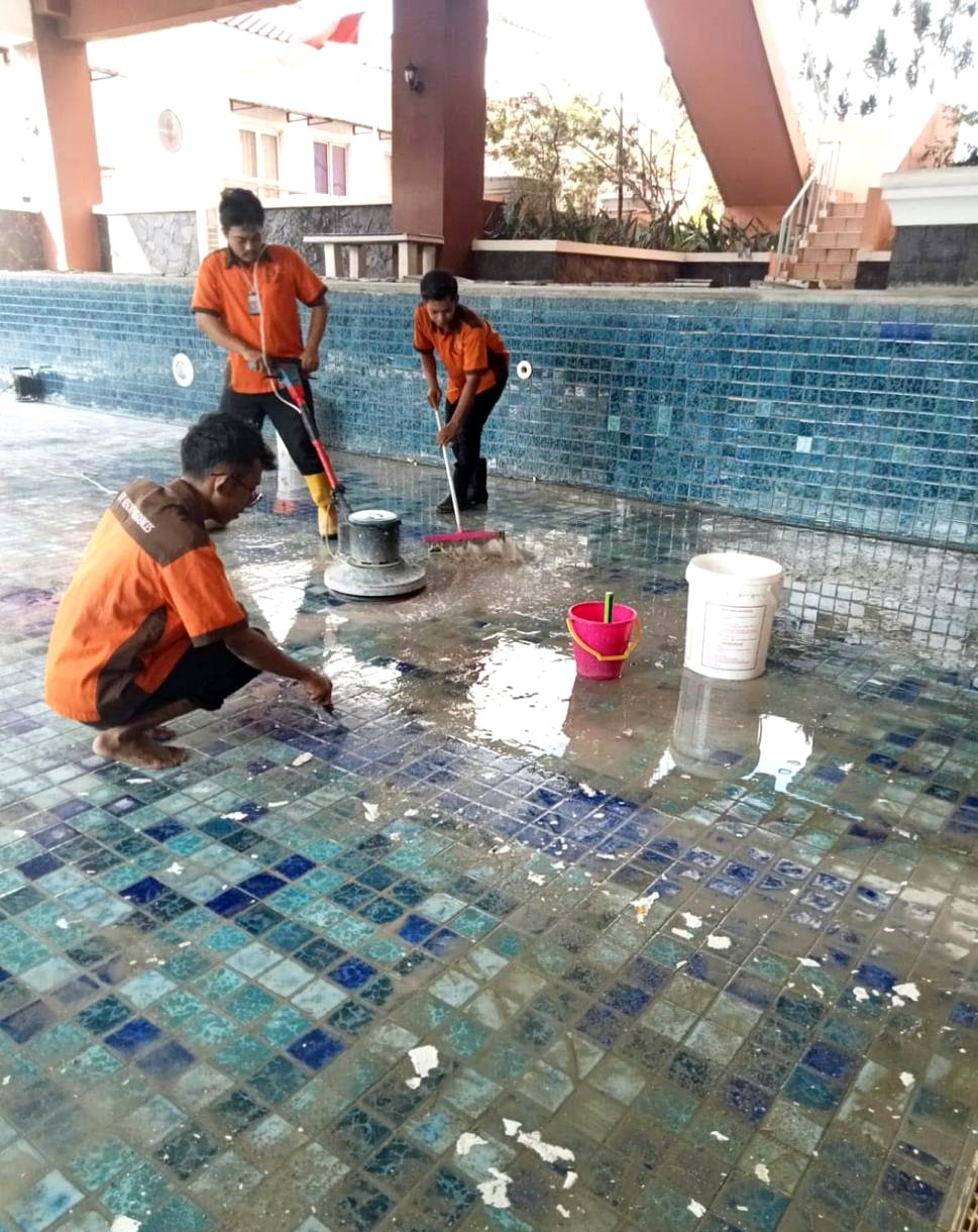 Seluruh keramik yang retak dan pecah di dasar maupun pinggiran kolam telah diganti dengan material baru berkualitas tinggi. Untuk memastikan keamanan pengguna, area tepi kolam kini menggunakan keramik anti-slip, sehingga risiko terpeleset dapat diminimalisir secara signifikan. Selain itu, seluruh nat (grout) pada dasar dan dinding kolam di-refill kembali, memastikan kerapatan dan daya tahan kolam tetap optimal dalam jangka panjang.
